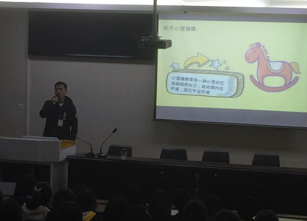 本次讲座的主题是“新生入学适应”。主讲老师是我校心理学教师严昊。严老师的讲演语言诙谐幽默,生动有趣,通过他深入浅出、绘声绘色的的演讲以及现场互动,同学们情绪高涨,现场的气氛热烈,掌声不断。