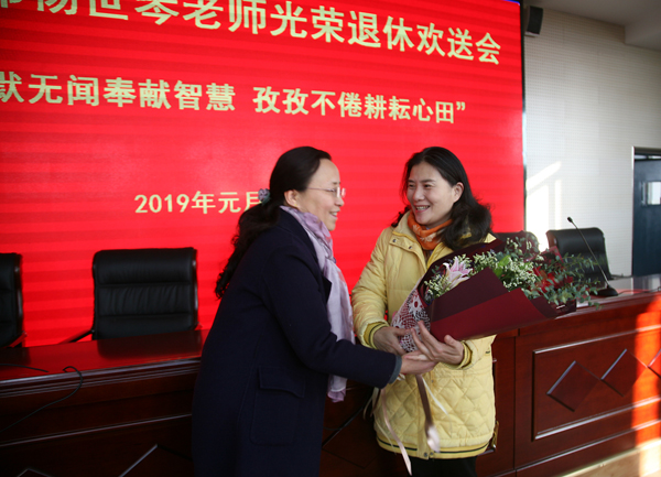 欢送会由杨晓宁副主任主持。会上,李风华主任首先发表了热情洋溢的讲话。她赞美杨世琴老师一生默默无闻爱岗敬业,孜孜不倦耕耘心田,为青年教师树立了榜样,同时也表达了对杨世琴老师真诚的敬意和衷心的祝愿。