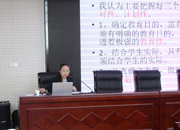 杨晓宁在随后的培训小结中,向刘老师的奉献精神和恪尽职守表达了敬意,希望青年班主任在今后的主题班会设计中摸清家底、有的放矢、因材施教、突出实效,期待与秦晴名班主任工作室、陈明秀名班主任工作室及经信建工学部的进一步深入交流、经验分享。