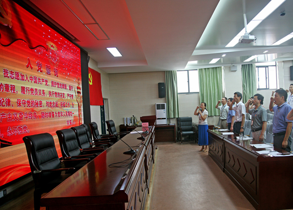 在党支部书记李风华同志的带领下,全体党员重温了入党誓词。面对鲜红的党旗,全体党员举起右拳,再次郑重许下对党忠诚的庄严承诺,增强了党员们的使命感、责任感和荣誉感。