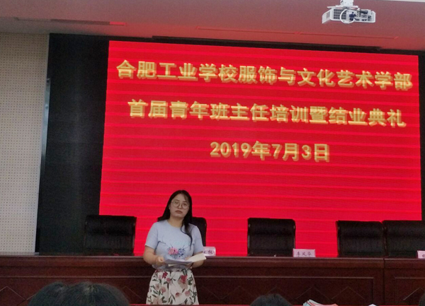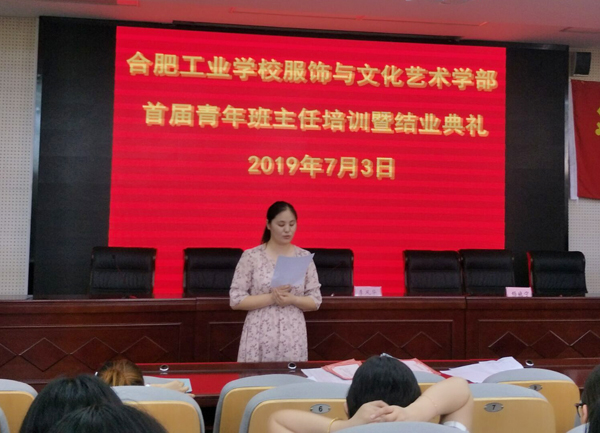 “新竹高于旧竹枝,全凭老干为扶持。”仲夏时节,林荫阵阵,服饰学部迎来了首届青年班主任培训暨结业典礼。7月3日,服饰学部35岁以下青年班主任齐聚一堂,共同聆听。培训由学部副主任杨晓宁主持,合肥工业学校副校长张宗权、学部主任李风华出席。