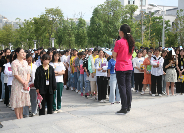 9月18日上午9:40,工作人员各就各位,防空警报响起,疏散演练正式开始。伴随着广播员反复播送“老师同学们请注意,现在是防空应急疏散演练,请大家在引导员的引导下,按各班级疏散路线,迅速离开教室,疏散到学校应急避难场所”,近2000名学生在老师的引导下,头顶厚书、弯腰疾行,按预定路线撤离到学校中心广场,并迅速整队集结。学部随后清点人数,全体师生齐装满员,无一人掉队或受伤,整个演练过程井然有序,共计用时4分31秒。