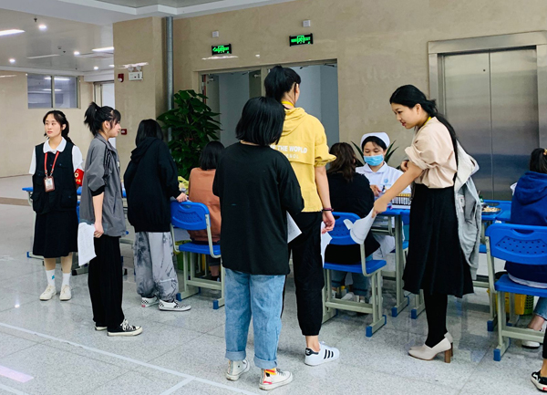 体检医务人员在我校总务处、医务室、19级新生班主任及学生会同学的积极配合下,认真细致地给每位学生做了全面体检。体检现场,安排恰当,井然有序。