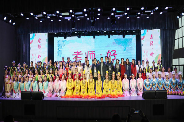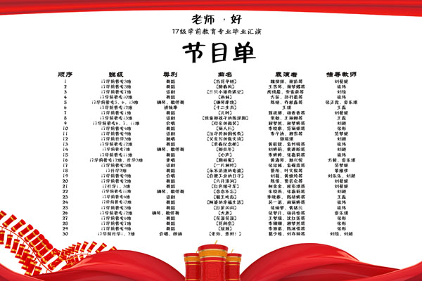 在合唱、朗诵《老师,您好!》的感人旋律中,2017级学前教育专业学业汇报表演圆满结束,来宾及校领导共同与演职人员进行了合影留念。