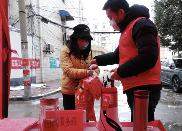 当前,全国新型冠状病毒感染的肺炎疫情防控工作在紧张有序推进中。2月15日,大风大雪肆虐着江淮大地,合肥气温骤降,下起中雪,温度达到零度以下。我校第三党支部秦毅等9名党员志愿者与下沉所在的社区人员一起,携手顶严寒、冒风雪,坚守在工作岗位上,开展疫情防控工作。