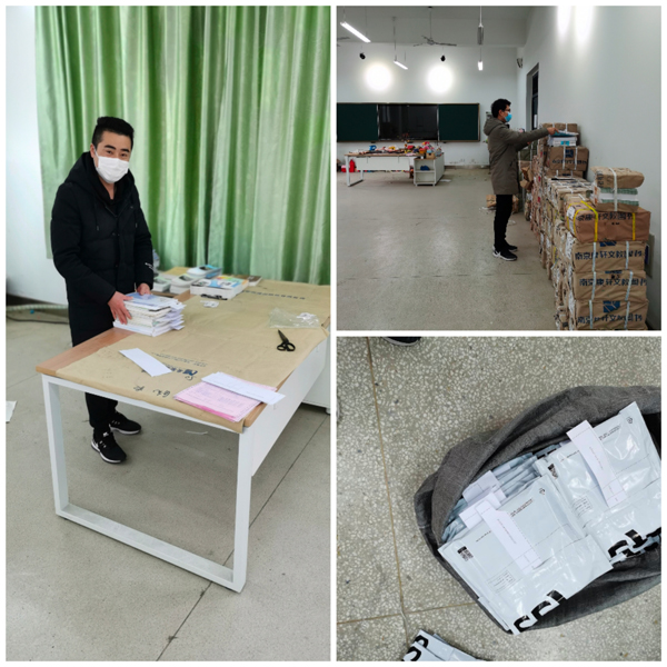 邮寄教材,确保新书上课。2月24日,李阳和刘大鹏二位老师驾私家车到校联系到快递公司,为教师寄出新学期教材,确保第一天上新课。