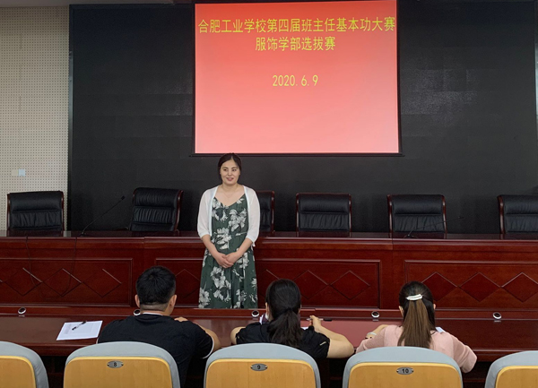 为了加强班主任队伍建设,提高班主任的综合素质和专业能力,交流和分享班主任们在实践中的教育智慧,促进班主任师德修养,弘扬新时期班主任风貌, 推动班主任专业发展,6月9日,服饰学部在323阶梯教室举行“合肥工业学校班主任基本功大赛”学部选拔赛活动,服饰学部35周岁以下班主任全部参与。