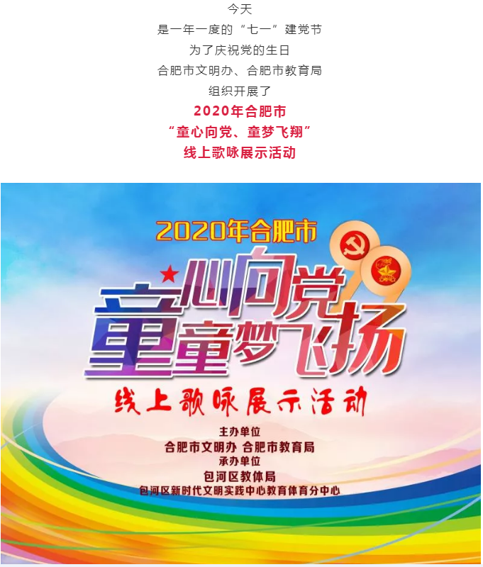链接:七一|童心向党、童梦飞翔!我们用歌声祝福党的生日! https://mp.weixin.qq.com/s?__biz=Mzg4OTIwNDg3Nw==&mid=2247496068&idx=1&sn=31e40b5aad74c62fed18ccad43a2f243&scene=21#wechat_redirect