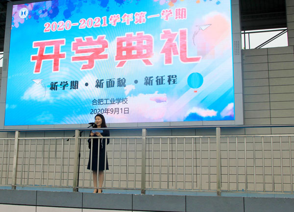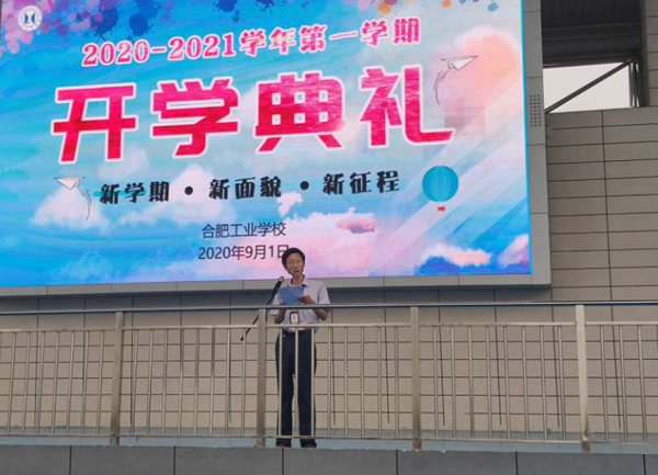 接着是合肥工业学校党总书记、校长王靖为新学期典礼致辞,王校长先表达了对2383名新生加入合肥工业学校大家庭的表示热烈的欢迎,总结了合肥工业学校全校师生在过去一学期里在学校管理、教育教学及防疫工作中取得的成绩,表扬了全校师生的务实、进取、创新精神,最后向同学们提出三点希望:搞好安全,敬畏生命;提升追求,迎接挑战;勤俭节约,反对浪费。给全体师生在工作、学习方面明确了方向。