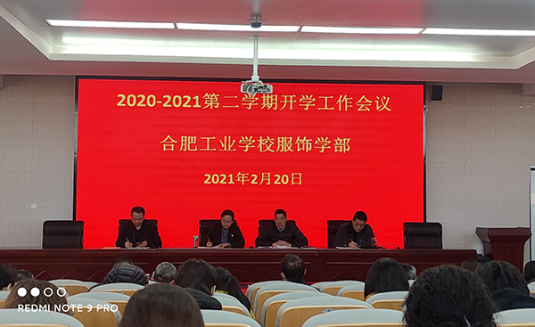 正值新春风好,草木复苏之际,合肥工业学校服饰学部于2021年2月20日上午9:00在阶梯教室323召开2020-2021学年度第二学期开学工作会议。会议由李风华主任主持,张宗权副校长、范侨副主任、杨晓宁副主任以及全体教职工参加会议。