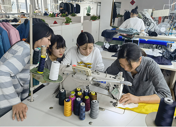 服饰学部杨丽、郝明如老师不畏辛苦,带领服装专业的学生进入企业一线进行锻炼学习。