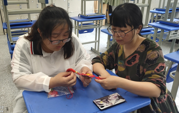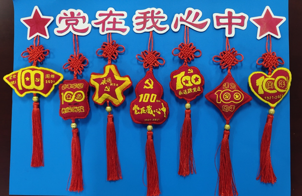 吴倩老师一边给学生讲解党史知识,一边教学生刺绣针法。在吴倩老师的指导下,学生们一针针、一线线,把爱党、敬党、颂党之情融进亲手绣制的“平安福”中。同学们精心设计并制作的“平安福”作品,虽然针脚依然稚嫩,但同学们都绣得特别认真,把对党的热爱融入到一针一线中,用自己的方式为喜迎建党100周年献礼,祝福我们的党光辉万年,祝福我们的国家繁荣昌盛。