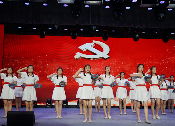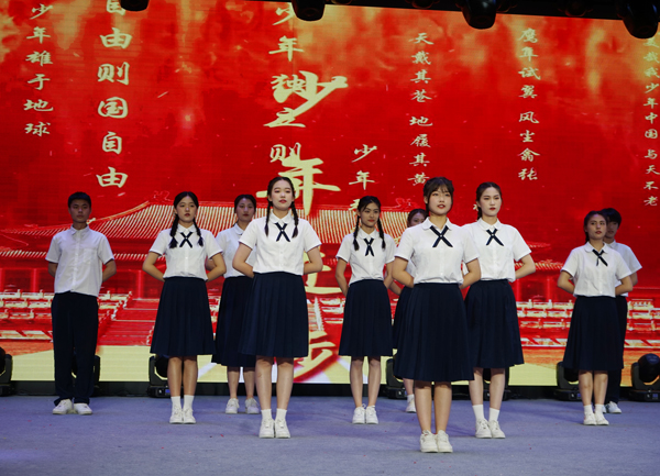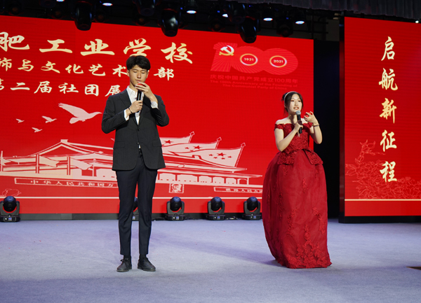 为庆祝建党一百周年,践行社会主义核心价值观,筑牢未成年人思想道德建设阵地,打造特色社团,彰显校园文化,推进“五育并举”,促进学生全面发展。6月4日,合肥工业学校服饰与文化艺术学部隆重举办以“奋斗百年路,启航新征程”为主题的社团展演活动,这是学部社团展评周系列活动中的展演环节。校党委委员、副校长张宗权,校党委委员、副校长谢丹,工会主席王承江莅临展演现场观摩指导。