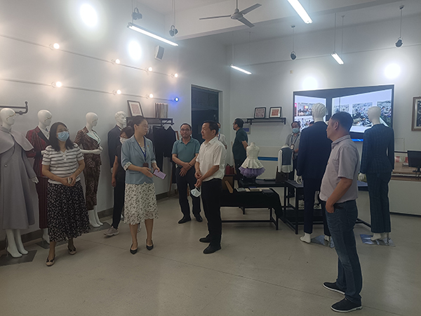 考察团一行首先参观了学校服饰与文化艺术学部服装智能定制产学研基地和服装生产车间智能一体化实训室,深入了解服装专业校企合作、产教融合、教育教学、竞赛升学等情况。