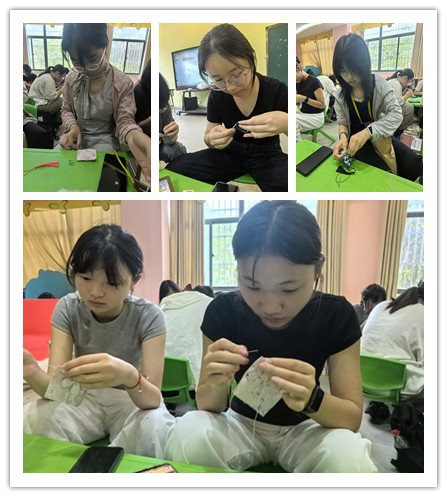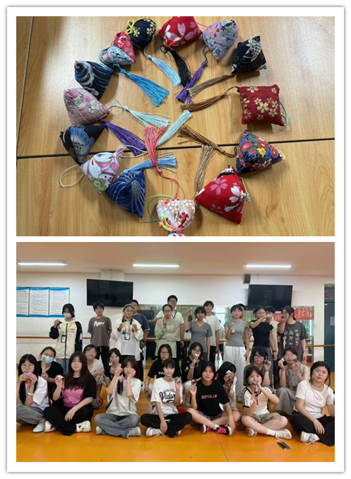 实践环节中,班主任楚老师为同学们分发了五彩丝线、香料、棉花等材料,并示范编织彩绳、缝制香包的技巧。学生们热情高涨,有的巧手翻飞编织出寓意吉祥的端午手链,有的精心填充艾草缝制驱邪香囊。活动中,绘画专业学生的艺术创意与手工技艺相得益彰:彩绳融入渐变配色设计,香包绣上班级专属图案,展现了传统工艺与现代审美的融合。