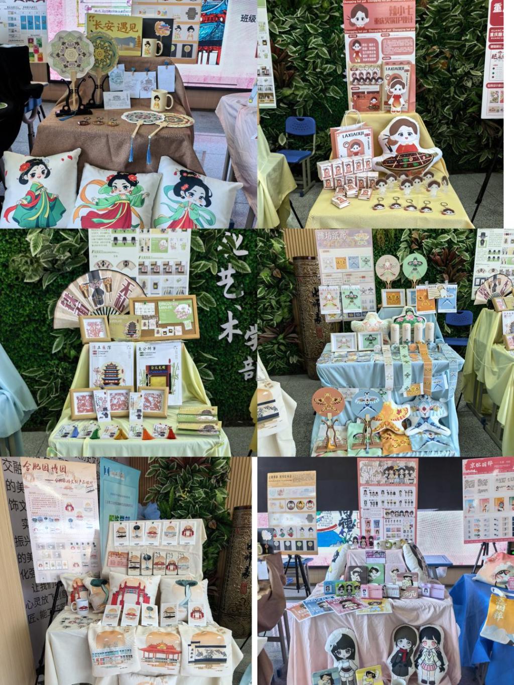 展览现场不仅是作品的展示场,更是教学成果的检验台。从前期的文化调研到后期的实物落地,同学们在专业教师的指导下,历经数月打磨,将课堂所学转化为兼具艺术性与实用性的设计作品。展览当日,专业教师及各年级学生纷纷到场观展,对作品的创意深度与完成度给予高度评价。