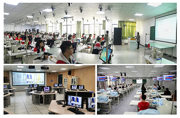 专业实训室建有服装制作理实一体实训室、服装立裁制版实训室、服装创意立裁设计室、虚拟三维试衣系统设计室、服装CAD仿真设计室等8个校内专业技能实训室,校内拥有校企共建1个校企双创基地、1个综合展演大厅。