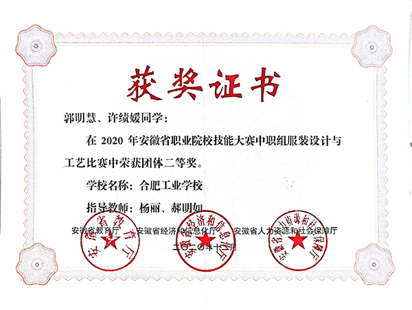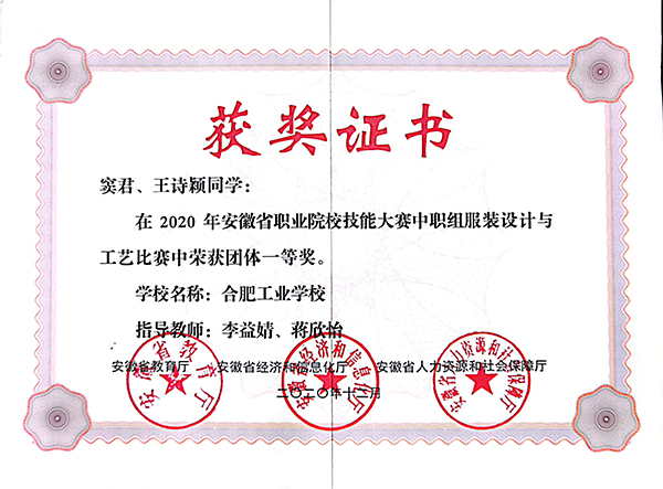 【图片10 安徽省服装中职技能大赛2020年省赛二等奖】