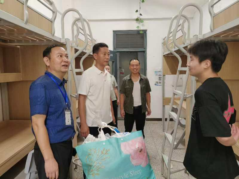 学生宿舍楼下,有专门的后勤工作人员为学生提供住宿帮助,保证学生顺利入住宿舍。学生公寓明亮整洁、焕然一新,工作人员们热情地解答同学们关于宿舍生活的问题,消除了同学们在陌生环境中的紧张情绪。