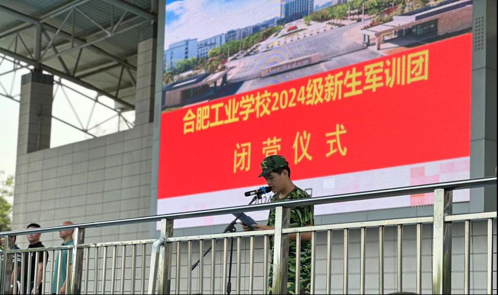 在军训闭营仪式上,合肥市瑶海区人民武装部领导、学校领导、教官及全体师生齐聚一堂,共同见证这一重要时刻。仪式上,学校领导致辞,对同学们在军训中的表现给予了高度评价,并鼓励他们在未来的学习和生活中继续发扬军训精神。随后,服装与文化艺术学部24级计算机平面设计普专1班薛麒恒作为新生代表上台发言。仪式最后,学校党委副书记、校长孙健宣布合肥工业学校2024级新生军训闭营。