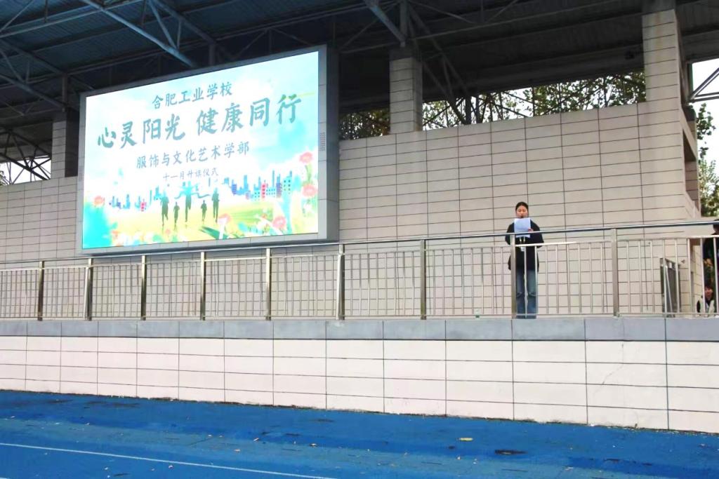 2024 年 11 月 18 日上午,服饰学部全体师生齐聚校田径场,举行了以“心灵阳光,健康同行”为主题的升旗仪式。本次仪式由服饰学部分管学生工作副主任李益婧主持。