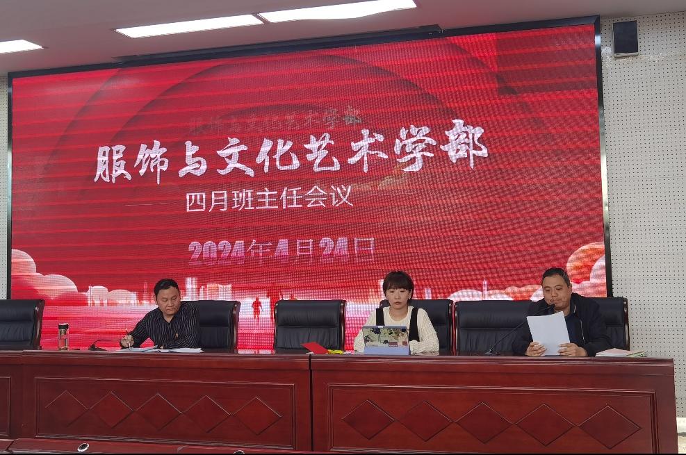 2024年4月24日,服饰与文化艺术学部成功召开了四月份班主任工作会议。服饰学部主任邓传国、副主任李益婧以及全体班主任出席会议。此次会议旨在总结前半学期的工作成果,分析存在的问题,并共同商讨下半学期的工作计划和策略,以更好地优化学部学生管理工作。