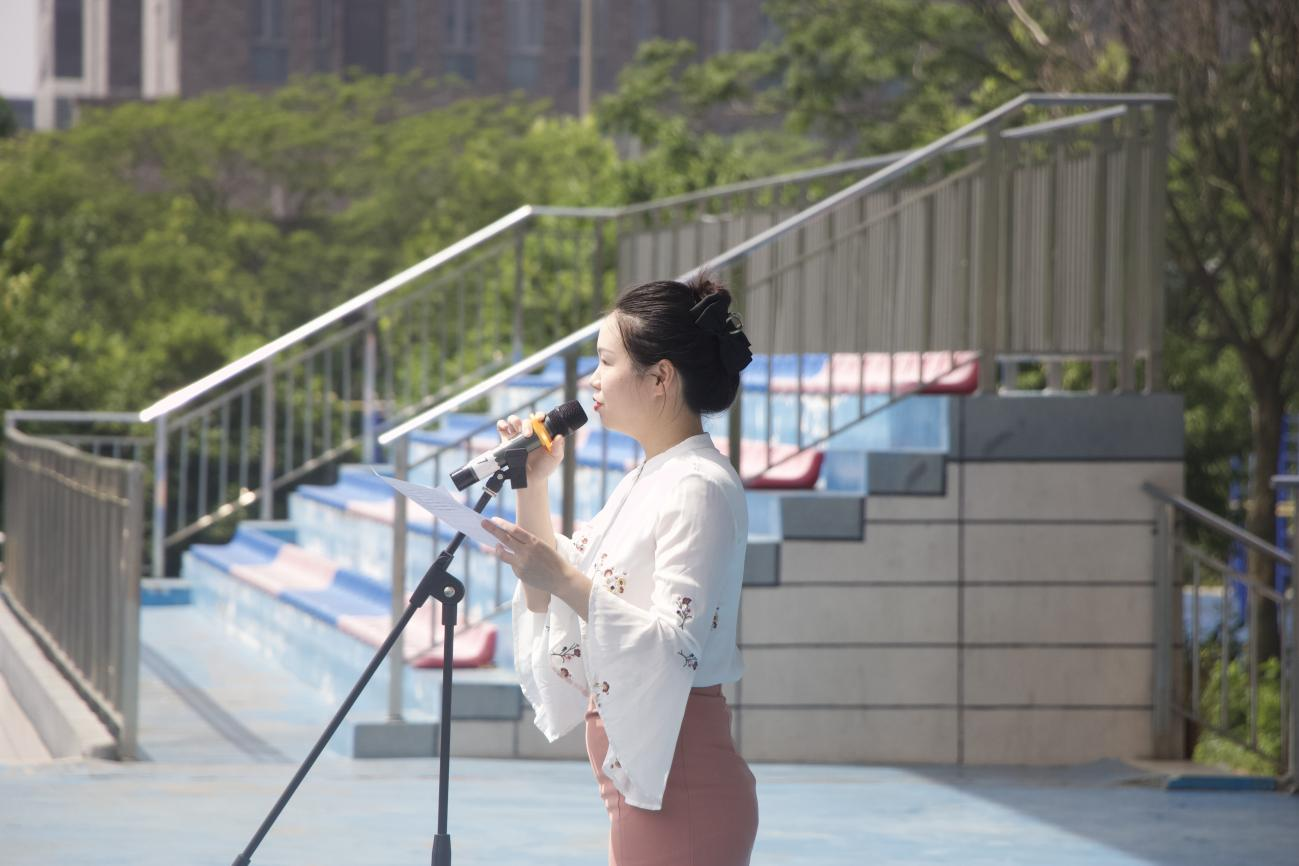 服饰学部班主任代表周天崇老师进行国旗下讲话,她讲述了在社会、生活、学习中保持心理健康的重要性,心理健康包括了积极的情绪体验、适应压力的能力、积极的人际关系和对自我价值的认可。一个健康的心理状态有助于改善个人的生活质量与学习态度,更好地处理人际关系等。
