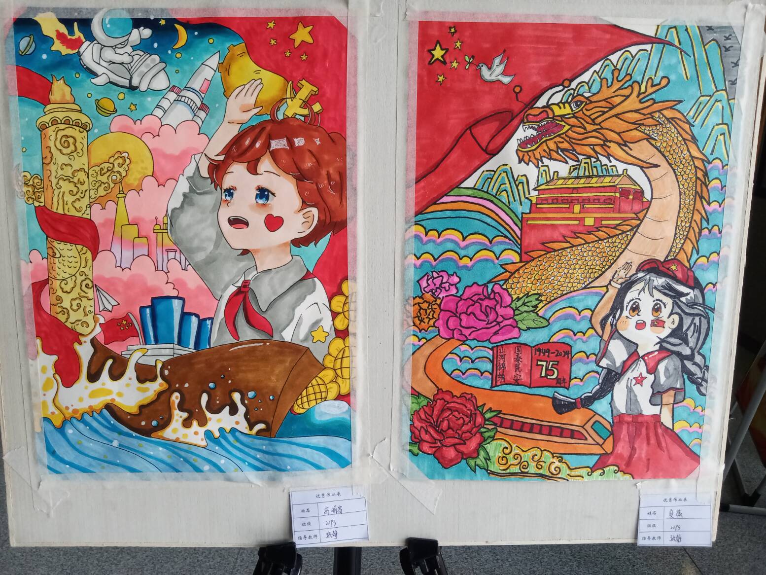 在中华人民共和国成立75周年的光辉时刻,合肥工业学校服饰学部22绘画普专班3班在美术专业课张静老师的指导下,精心筹备儿童画展、剪纸展,为祖国75华诞献礼。本次展览于2024年10月28日至11月1日在学部一楼大厅展出,为校园增添了一抹浓郁的爱国艺术氛围。