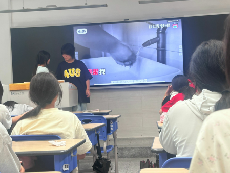 为了让同学们更深入地理解环保行动的重要性,活动设置了互动环节——垃圾分类教学。魏颜和汤永馨详细讲解了垃圾分类的重要性和必要性,指出垃圾分类是减少环境污染、实现资源回收利用的重要举措。接着,她们通过现场演示和问答的方式,教大家如何正确区分可回收物、有害垃圾、厨余垃圾和其他垃圾。同学们积极参与,踊跃回答问题,现场气氛热烈。每当有同学回答正确,两位主持人都会给予热情的鼓励和肯定,还送上小奖品,进一步激发了同学们的学习热情。