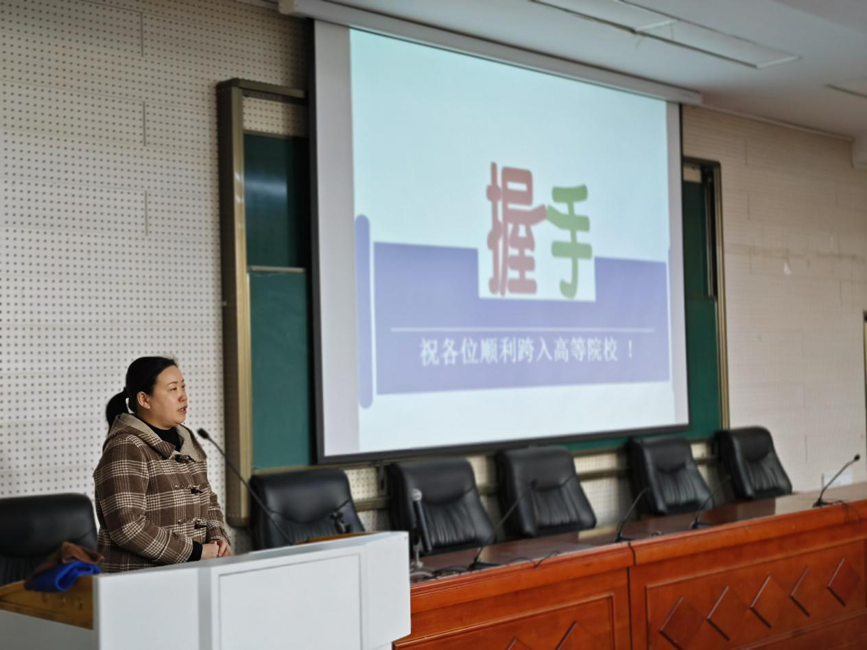 会上,吴建玲老师从19级学生的录取分数、录取专业,结合近年来各对口高校招生计划数以及各对口高校专业理论课、方向课的考试侧重点等方面详细介绍了高考志愿填报的注意事项和技巧。她强调,考生填报志愿时应根据兴趣和科目优势进行选择,更重要的是需要考虑到自己的成绩水平,联考成绩具有较高的参考价值。此外,吴老师就自己擅长的营销策划领域给同学们提供了市场营销考试新的答题思路和注意事项。随后,去年的两位优秀毕业生代表董秀玲、张红艳上台进行考试经验分享。她们介绍了自己冲刺阶段的学习方法和压力调节经验,鼓励大家不到最后不要放弃,祝愿每位学弟学妹都能通过努力考上理想高校。