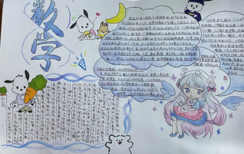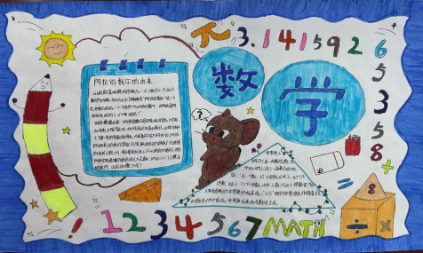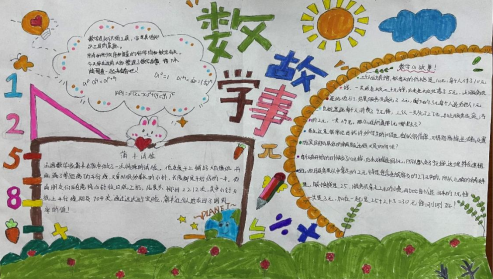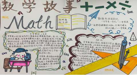分享数学故事,畅游数学世界。活动中,同学们积极参与,广泛收集资料,精心设计版面,开启了一场别开生面的探索求知之旅。学生们通过独特的构思,丰富的色彩,描述了一个又一个有趣又富含哲理的数学故事,《笛卡尔的故事》《对数的起源》《数学天才——高斯》等等与数学知识密切相关的故事,把我们领入奇妙的数学世界,让我们领略数学的无穷魅力。