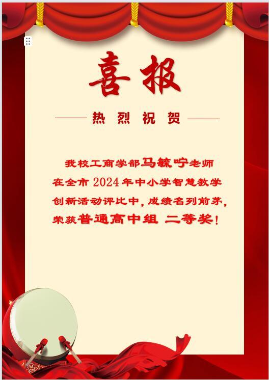 近日,在刚刚落幕的2024年合肥市智慧教学创新活动评比中,我校工商学部马毓咛老师凭借出色的教学创新和卓越的课堂表现,荣获了普通高中组数学学科二等奖。这一殊荣不仅是对马老师个人努力的认可,更是对她在智慧教学领域不断探索、勇于创新精神的极大肯定。