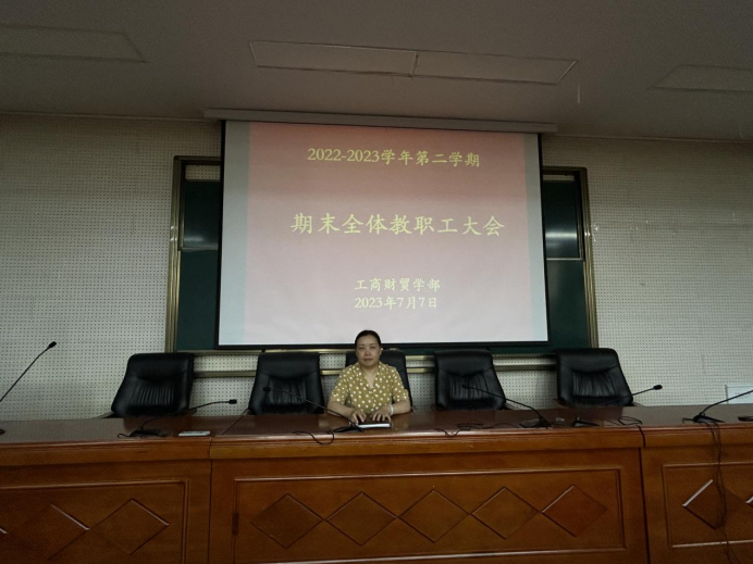 7月7日上午,工商财贸学部在三楼阶梯教室召开本学期期末教职工大会。会议由学部主任张健主持,校党委委员、副校长董云霞,全体教职工参加会议。