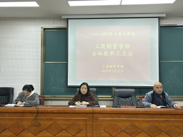 2025年3月12日下午,工商学部在二楼阶梯教室召开了全体教职工大会,布置学部2024年度教职工年度考核工作。会议由学部主任张健主持,全体教职工参加会议。