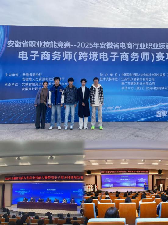 近日,安徽省跨境电子商务赛项暨跨境电子商务师决赛落下帷幕。工商财贸学部市场营销与连锁经营管理专业许丽老师带领学生参赛,凭借出色表现脱颖而出,不仅学生团队整体成绩优异,许丽老师更以扎实的专业指导能力与丰富的实践经验,斩获赛事个人三等奖。