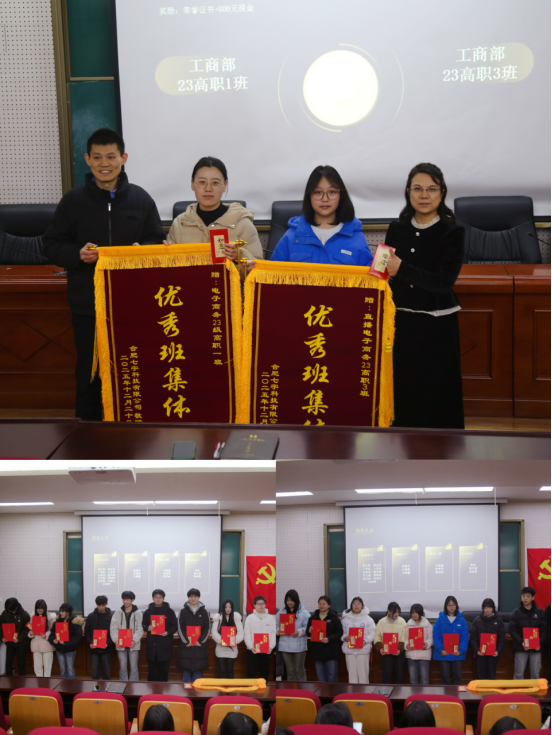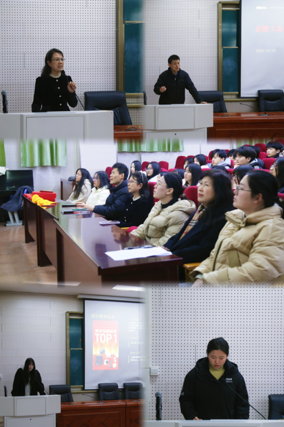 为进一步深化产教融合、总结合作经验、表彰先进典型,2025年12月24日下午,工商学部在学部三楼阶梯教室隆重召开了第七届校企合作表彰总结会议。会议邀请合肥七宇科技有限公司代表、学校招就办领导、班主任教师及学生代表齐聚一堂。