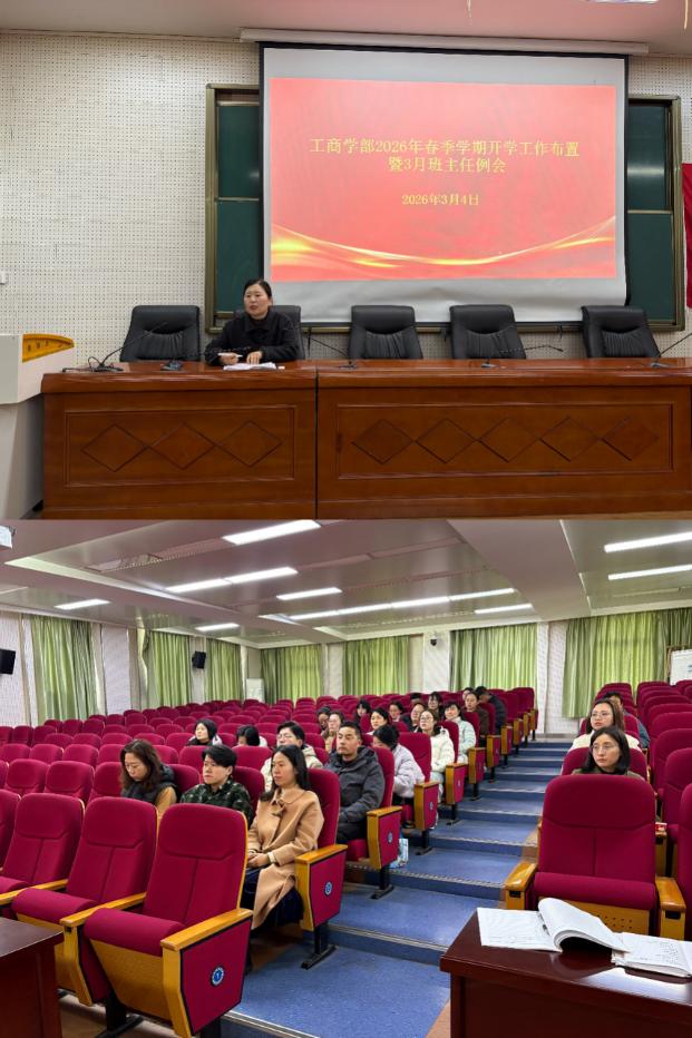 为切实做好2026年春季学期开学各项准备工作,确保新学期学生管理平稳有序,3月4日下午,工商学部召开春季学期开学工作布置暨3月班主任例会。会议由学部副主任葛小莞主持,全体班主任参加会议。
