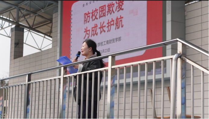 3月23日上午,工商学部在操场隆重举行“防校园欺凌 为成长护航”主题升旗仪式。学部全体师生参加,仪式由学管副主任葛小莞主持,旨在向校园欺凌亮明“零容忍”态度,筑牢校园安全防线。