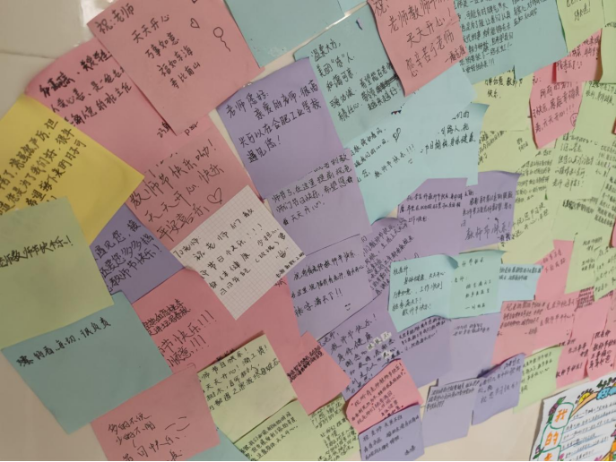 三尺讲台,执写春夏秋冬,粉笔顿挫,述说工商故事。学部在一幅幅学生绘画,一张张爱心祝福的装点下显得格外温馨,老师们的笑颜闪闪发光,每个角落都充满了对教育工作者的美好祝福。