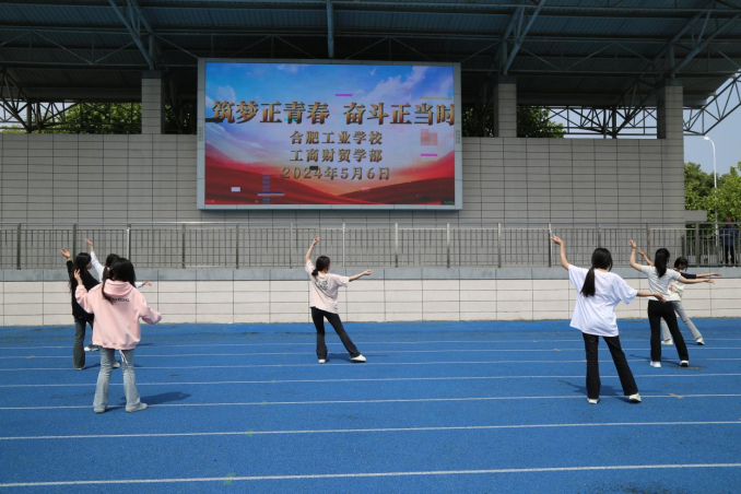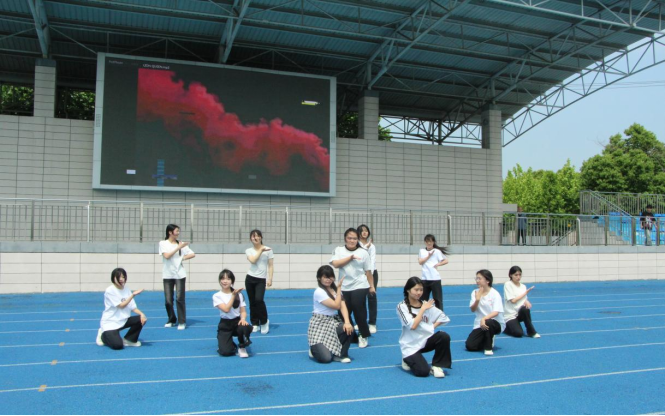紧接着,仪式进入了一个特别的篇章——“青春舞动,梦在脚下”舞蹈展示。在悠扬又不失激情的音乐声中,一群青春洋溢的舞社学生踏着轻快的节拍,步入了跑道中央。她们的舞蹈融合了古典与爵士的元素,她们时而时而轻盈曼妙,时而欢快热烈,每一个动作都充满了力量与美感,既展现了工商学子的活力四射,又寓意着在追梦路上的坚持与努力。随着最后一个音符缓缓落下,舞者以一个优雅而有力的姿势定格,全场随即爆发出雷鸣般的掌声。