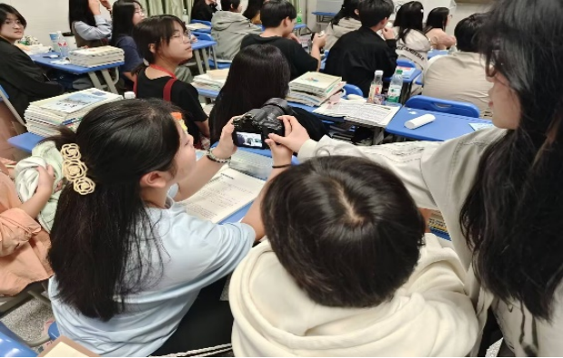 新媒体运营社的社长刘洁在招新过程中发现有同学流露出对相机的浓厚兴趣,立刻热情地邀请这位同学上手,耐心地讲解着相机的各个按钮功能、拍摄技巧以及构图方法。同学专注地聆听着,眼神中充满了好奇与兴奋。这一幕成为了社团招新现场的一道亮丽风景线。它不仅展现了社团社长们的热情与专业,更体现了社团招新活动的意义所在。在这里,同学们可以找到与自己兴趣相投的伙伴,共同探索、共同成长!