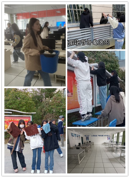 工商学部各班同学积极参与了此次活动。在明确分划好各自的负责区域后,大家立即进入到劳动状态中,纷纷撸起袖子,拿起劳动工具,全身心投入到劳动中去。在校园的各个地方都有同学们辛勤劳动的身影——他们握着扫把,认真地扫去教室外细碎的垃圾;他们拿起抹布,细致地擦着宣传栏上的脏污。朝阳洒落校园,教室整洁明亮,走廊一尘不染,晨辉温暖地洒下,照亮了每个同学喜悦的笑脸。