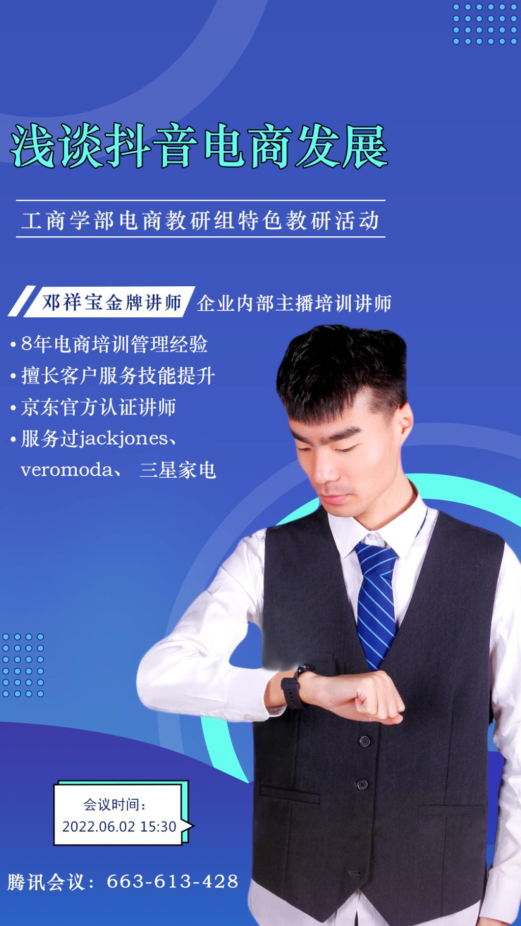 为进一步提升我校电子商务教研组教师的专业素养和教研能力,强化直播电商专业教学能力,拓展教研工作的思路和方法,提高电商专业学生的专业认知,电商组特聘请有着8年电商培训管理经验的京东官方认证讲师邓宝祥通过腾讯会议为师生们进行讲座。