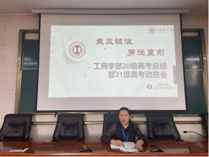 会议伊始,学部职教高考工作负责人胡梦颖老师对今年考取本科的学生进行了成绩分析,同时总结了各财经专业本科院校历年分数线和招生人数的变化,为接下来21级高考班的专业选择提供了数据的参考。