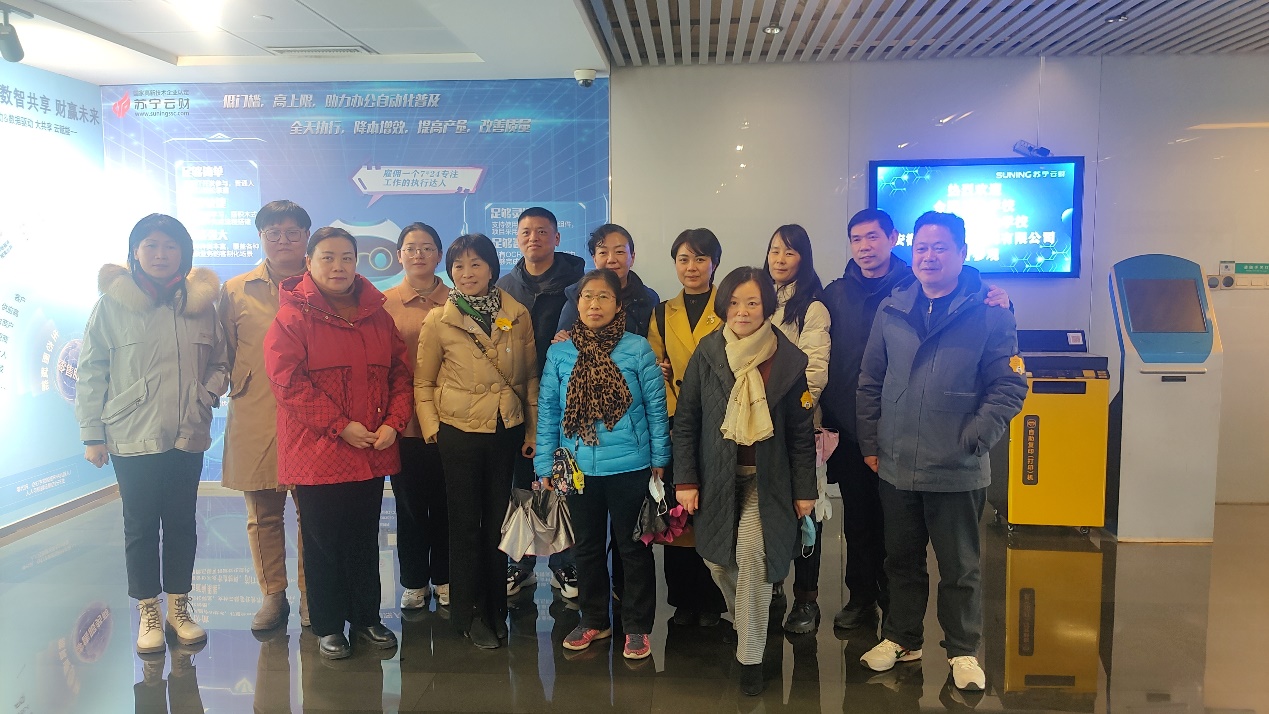 2月23日,合肥工业学校工商学部主任张健和招就培处赵平副主任带队财会专业教师前往南京苏宁云财公司进行参观学习,共同探讨推进产教融合的方式和方法,推动财会人才培养和产业对接。