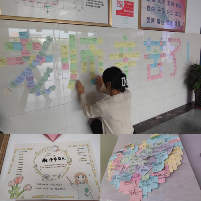 为了让学生铭记师恩,感受节日气氛,工商学部各团支部积极响应工商团总支“桃李满天下,恩情似海深”主题团日活动。9月7日至9日,同学们用便利贴写下感谢,在手抄报上绘出祝福。一张张充满温情的便利贴汇聚成爱心,“老师辛苦了!”成为教学楼一道特殊的风景线,吸引了老师们驻足观看,也深深打动了每一位老师的心。