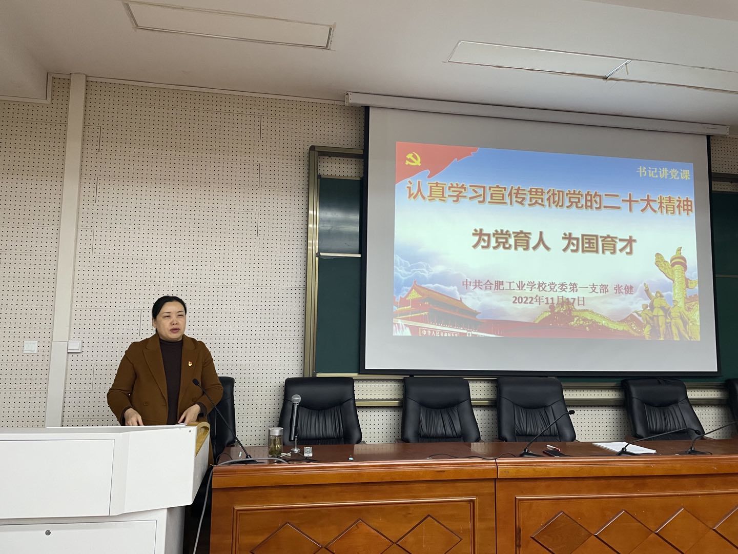 为深入学习宣传贯彻党的二十大精神,11月17日,第一党支部开展了十一月主题党日活动。活动在学部三楼阶梯教室进行,由支部书记张健主持。