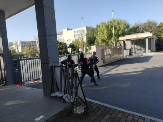 为提升校园安全防护能力,锻炼应对突发恐怖事件的快速反应和协同处置技能,确保学校师生的生命财产安全,学校安全保卫处联合安徽国盾保安服务集团有限公司于2024年11月28日上午在学校北门组织开展反恐防暴应急演练。