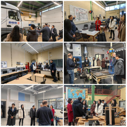 11月27日上午,在BBS1的精心安排下,我校代表团前往诺特海姆第二职业学校一所理工类职业学校进行参观交流。我校代表团在该校深入建筑、电子、汽修等专业的教室与实训室,全面了解其专业设置、课程体系、实践教学等方面的特色与优势。通过实地观摩与交流,我校代表团对德国职业教育在不同专业领域的实践应用有了更为直观和深入的认识,为我校相关专业的改革与发展提供了有益参考。