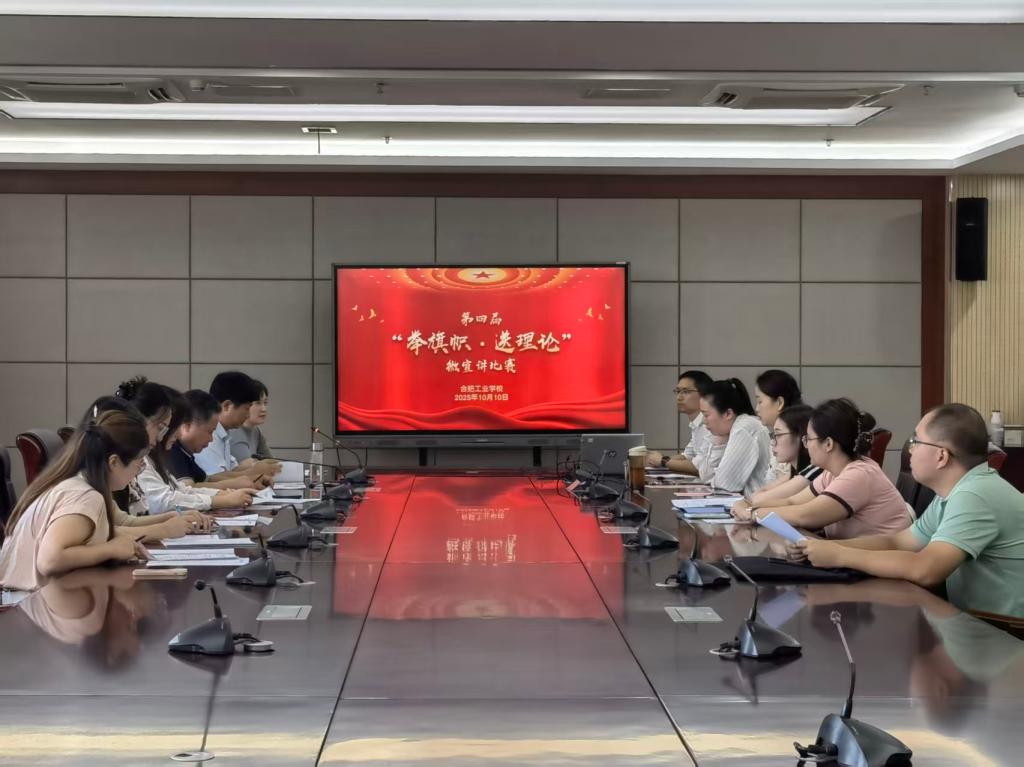 10月10日,合肥工业学校第四届“举旗帜 送理论”微宣讲比赛在科技楼九楼会议室顺利举行。活动由办公室主任吕珊珊主持,来自五个在职党支部的党员教师代表同台竞技,合肥工业学校党委委员、副校长袁乃玉出席并作总结讲话。